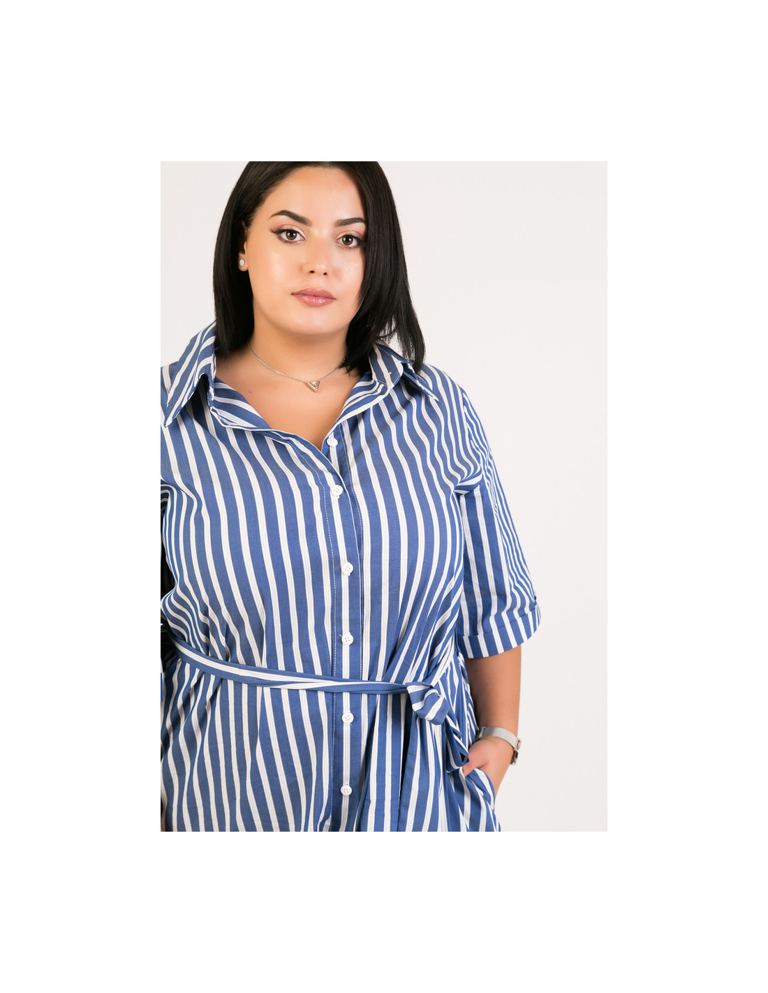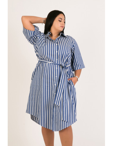 - Robe chemise rayée avec manches mi- longues et ceinture à la taille